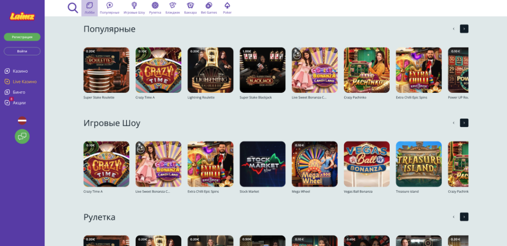 Казино Laimz предлагает своим игрокам высококачественное Live казино, которое сотрудничает с такими известными провайдерами, как Evolution, Pragmatic Play, Authentic, Ezugi и BetGames. Это значительно больше провайдеров, чем в среднем у онлайн казино в Латвии, что дает игрокам широкий выбор Live игр и возможности.